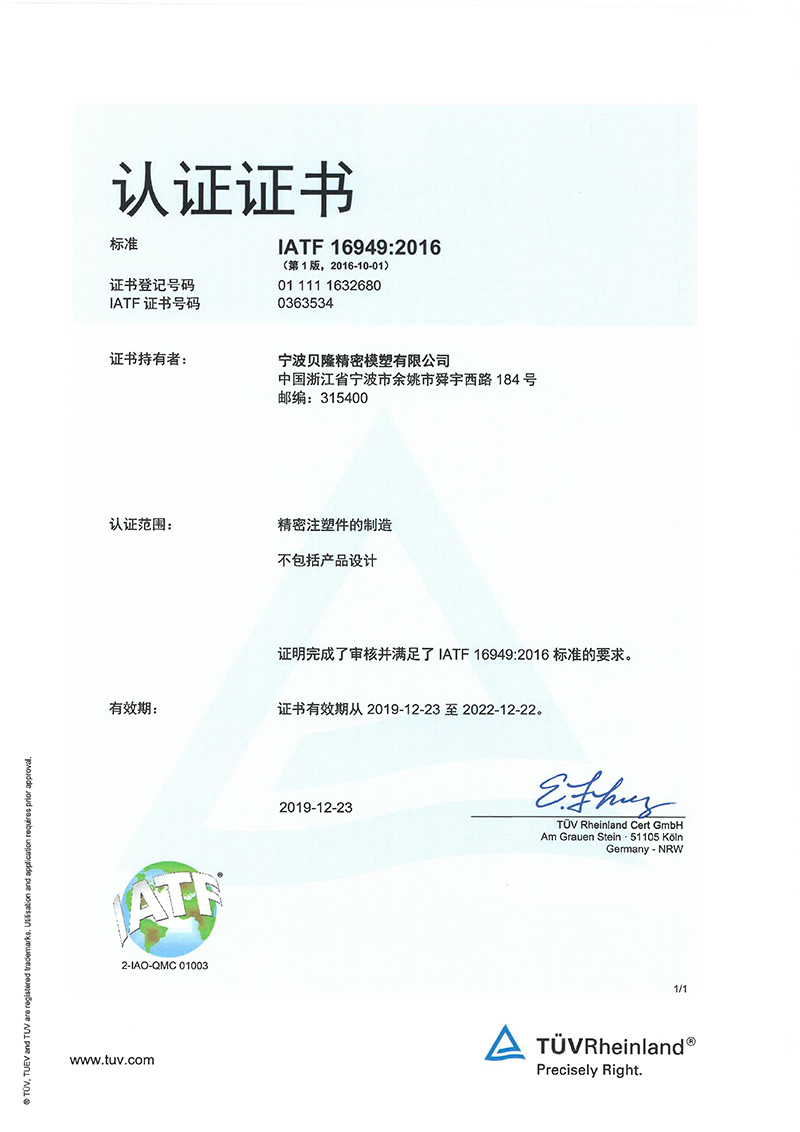 貝隆精密科技股份有限公司(股票代碼:301567)成立于2007年,坐落于中國模具之鄉(xiāng)、浙東名城浙江省余姚市,公司是專業(yè)從事精密注塑、沖壓、埋入成型、模具研發(fā)與制造的高新技術(shù)企業(yè)。被評定為國家制造業(yè)單項(xiàng)冠軍、國家級專精特新小巨人企業(yè)、國家知識產(chǎn)權(quán)優(yōu)勢企業(yè)。